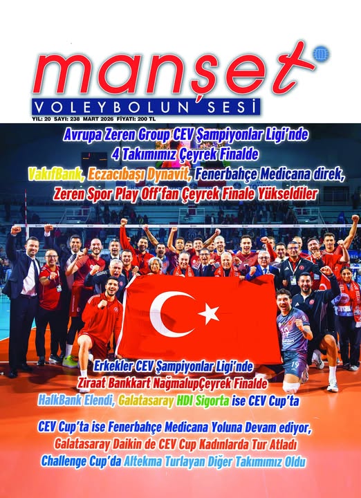Türkiye’nin aylık yayınlanan tek voleybol dergisi Manşet Voleybolun Sesi dergisi 239. Mart sayısıyla yine raflardaki yerini almanın haklı gururunu yaşıyor. Mart ayında takımlarımız Avrupa’da yine fırtına gibi esti. 4 takımla birlikte kadınlarda CEV Şampiyonlar Ligi’ndeyiz. Ziraat Bankkart Erkek voleybolunda CEV Şampiyonlar Ligi’nde gruptan namağlup lider olarak çeyrek finale çıktı.