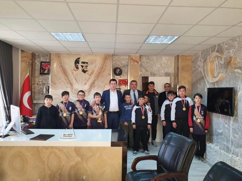 Afyonkarahisar’ın İscehisar Kaymakamı Uğur Kapar, Küçük Erkekler Voleybol Grup Müsabakalarında şampiyon olan İscehisar Mercan Ortaokulu öğrencilerini makamında kabul etti.