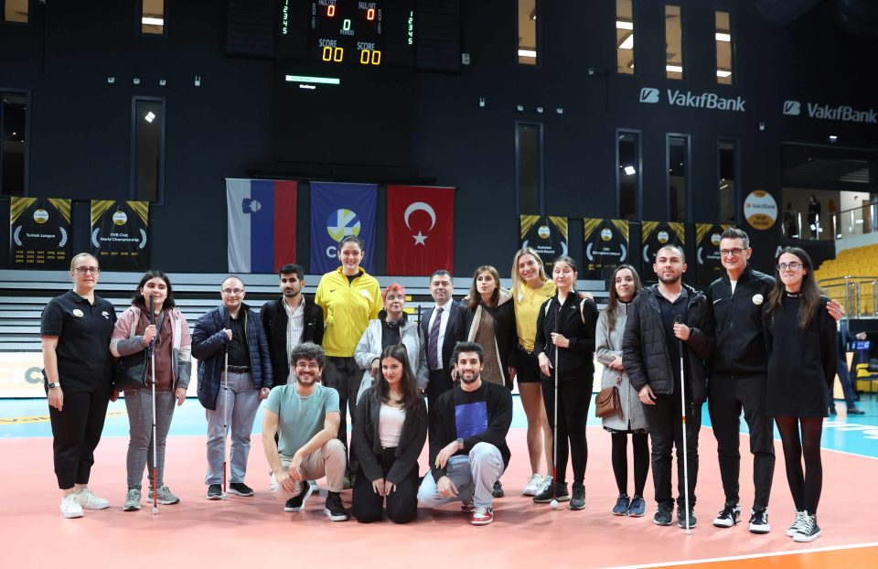 Saha içindeki başarılarının yanı sıra saha dışında da önemli sosyal sorumluluk projelerini hayata geçiren VakıfBank, ‘herkes için voleybol’ yaklaşımıyla dünyada ilk kez gerçekleştirilen bir çalışmanın daha altına imza attı. Sarı siyahlılar, BlindLook Türkiye iş birliğiyle 6 Kasım’da görme engelli 10 sporsevere gün boyu voleybol deneyimi yaşattı. VakıfBank Spor Kulübü Başkan Yardımcısı Ferkan Merdan tarafından ağırlanan misafirler, müzeyi gezip kupalara dokunarak tanıdıktan sonra ana salona geçerek fileye, topa, sahaya dokunarak tecrübe ettiler. Burada Banu Can Schürmann, Giovannni Guidetti, kaptan Zehra Güneş, Cansu Özbay ve yardımcı antrenörlerle bir araya gelen misafirler, ardından kendilerine ayrılan tribünde CEV Şampiyonlar Ligi’nde oynanan Calcit Kamnik maçını takip etti. Kulaklıklar aracılığı ile kendilerine betimlemeli olarak maç anlatılan görme engelli sporseverler, unutulmaz bir voleybol deneyimi yaşadı.